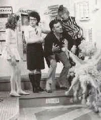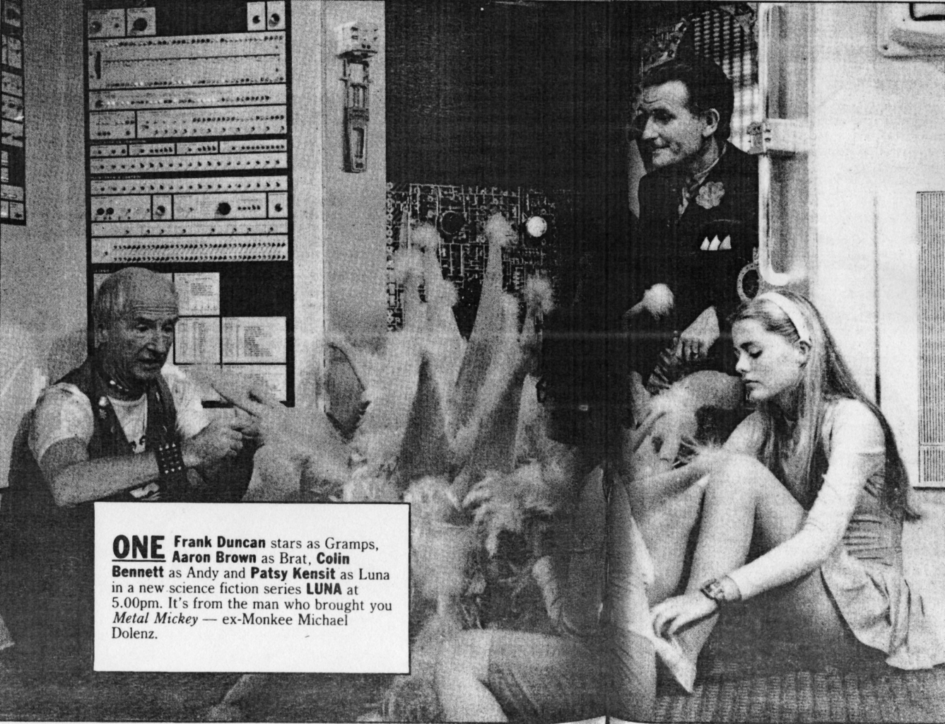 Gramps (Frank Duncan), family pet Jazzmine, a barely visible Brat (Aaron Brown), Andy (Colin Bennett), and Luna (Patsy Kensit)